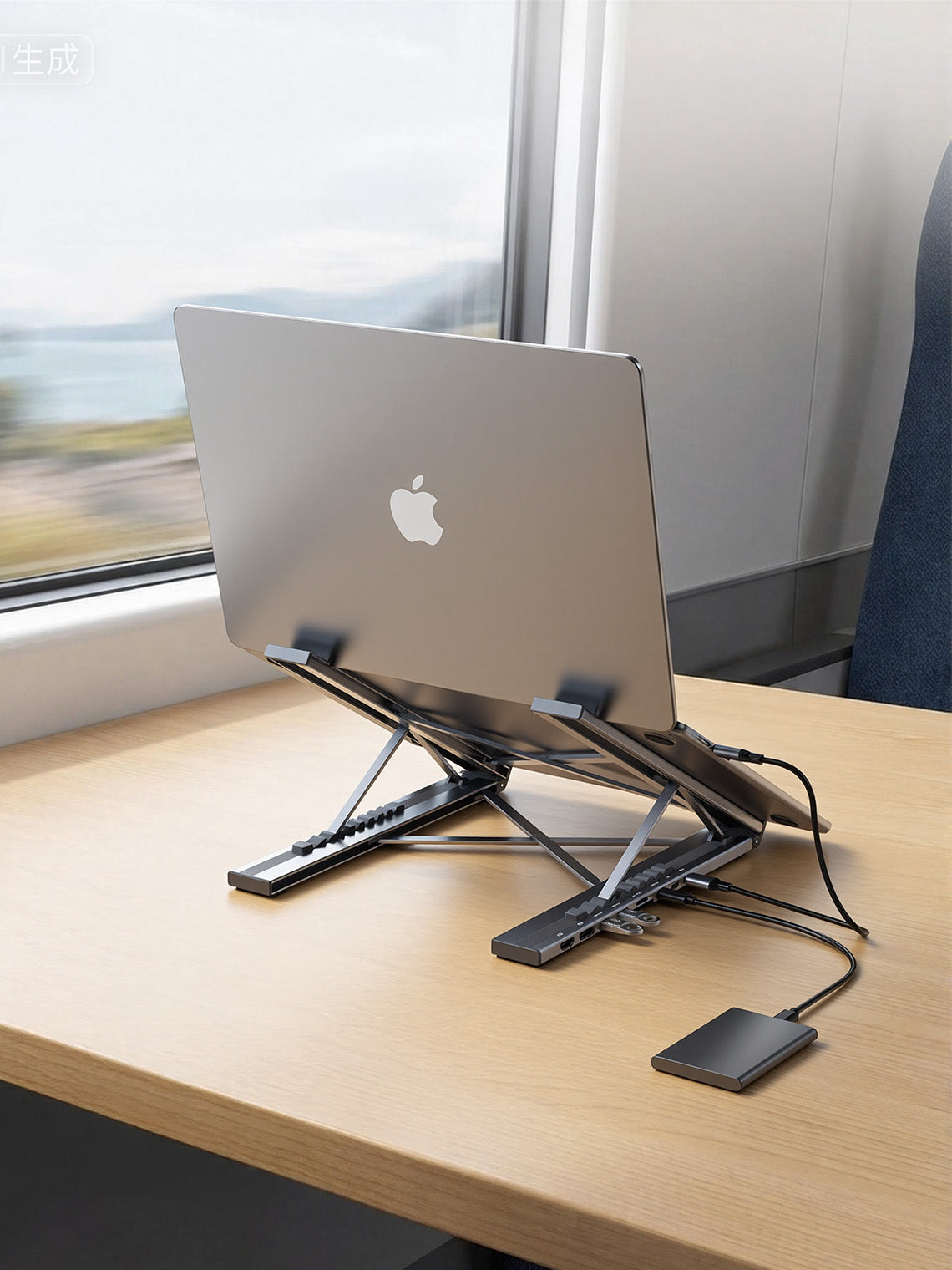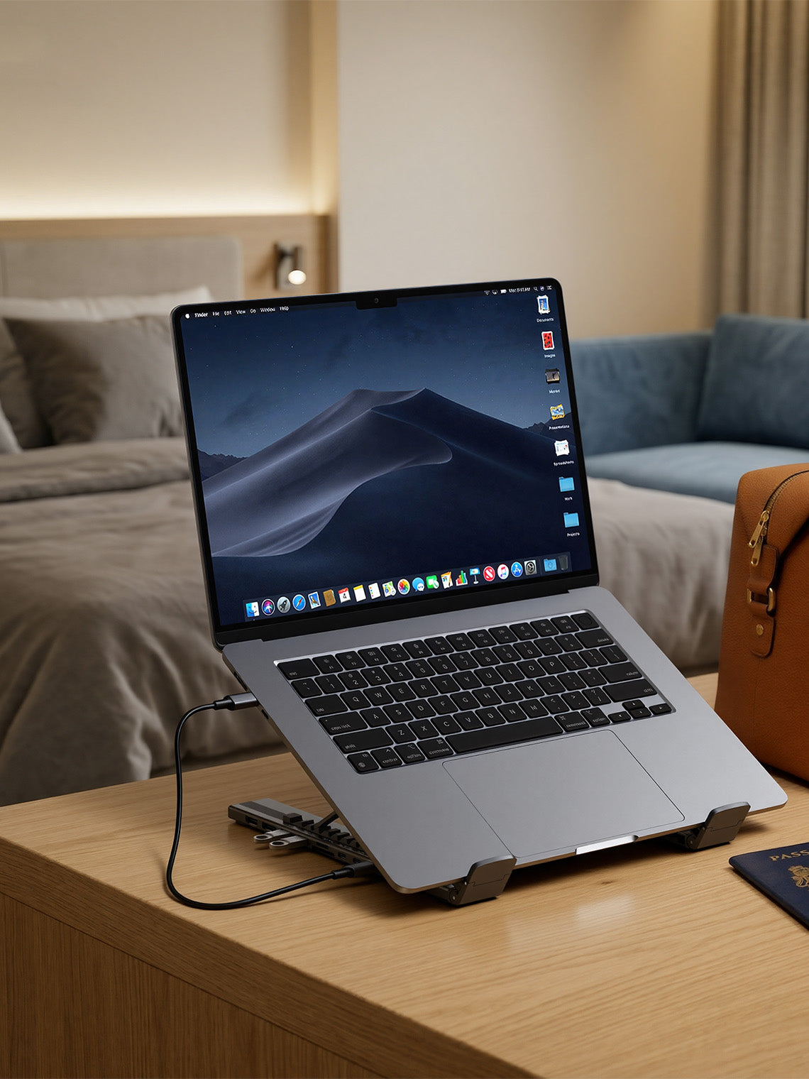 The same Laptop Dock Stand replaces both a stand and a hub, so you can work properly wherever you open your laptop.